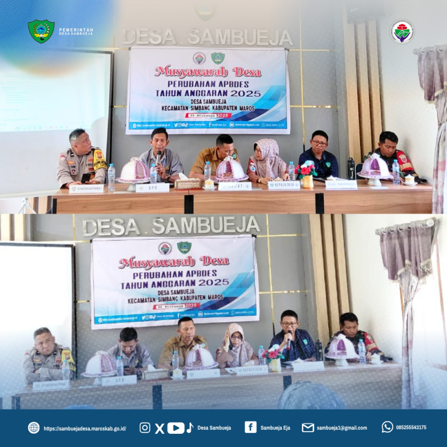 Dengan terselenggaranya Musyawarah Desa ini, diharapkan seluruh elemen masyarakat dapat terus berperan aktif dalam mengawal pelaksanaan APBDes agar pembangunan di Desa Sambueja dapat berjalan transparan, partisipatif, dan berkelanjutan.